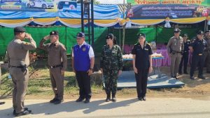 พร้อมด้วย เจ้าหน้าที่ทหาร ศูนย์พัฒนาปิโตรเลียมภาคเหนือ (บ่อน้ำมันฝาง) และเจ้าหน้าที่ตำรวจ ซึ่งปฏิบัติหน้าที่ประจำด่านตรวจบูรณาการ อำนวยความสะดวกด้านจราจรจุดบูรณาการณ์ฯ พร้อมมอบส้มสายน้ำผึ้ง ให้แก่ประชาชน/นักท่องเที่ยว ที่ใช้รถใช้ถนนเพื่อให้เกิดความสดชื่นในขณะเดินทาง ลดการหลับในแก่ผู้ขับขี่ สร้างสัมพันธ์อันดี กับผู้ใช้รถใช้ถนน และประชาสัมพันธ์ขอความร่วมมือให้พี่น้องประชาชน ปฏิบัติตามคำแนะนำ เพื่อป้องกันการเกิดอุบัติเหตุและลดปัญหาการเกิดอุบัติเหตุ