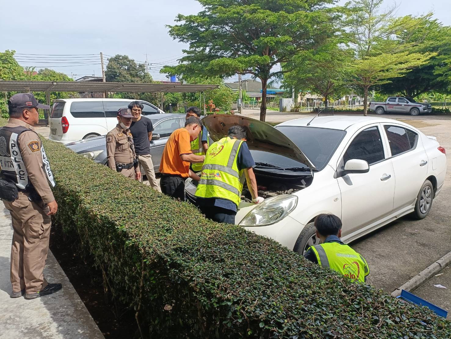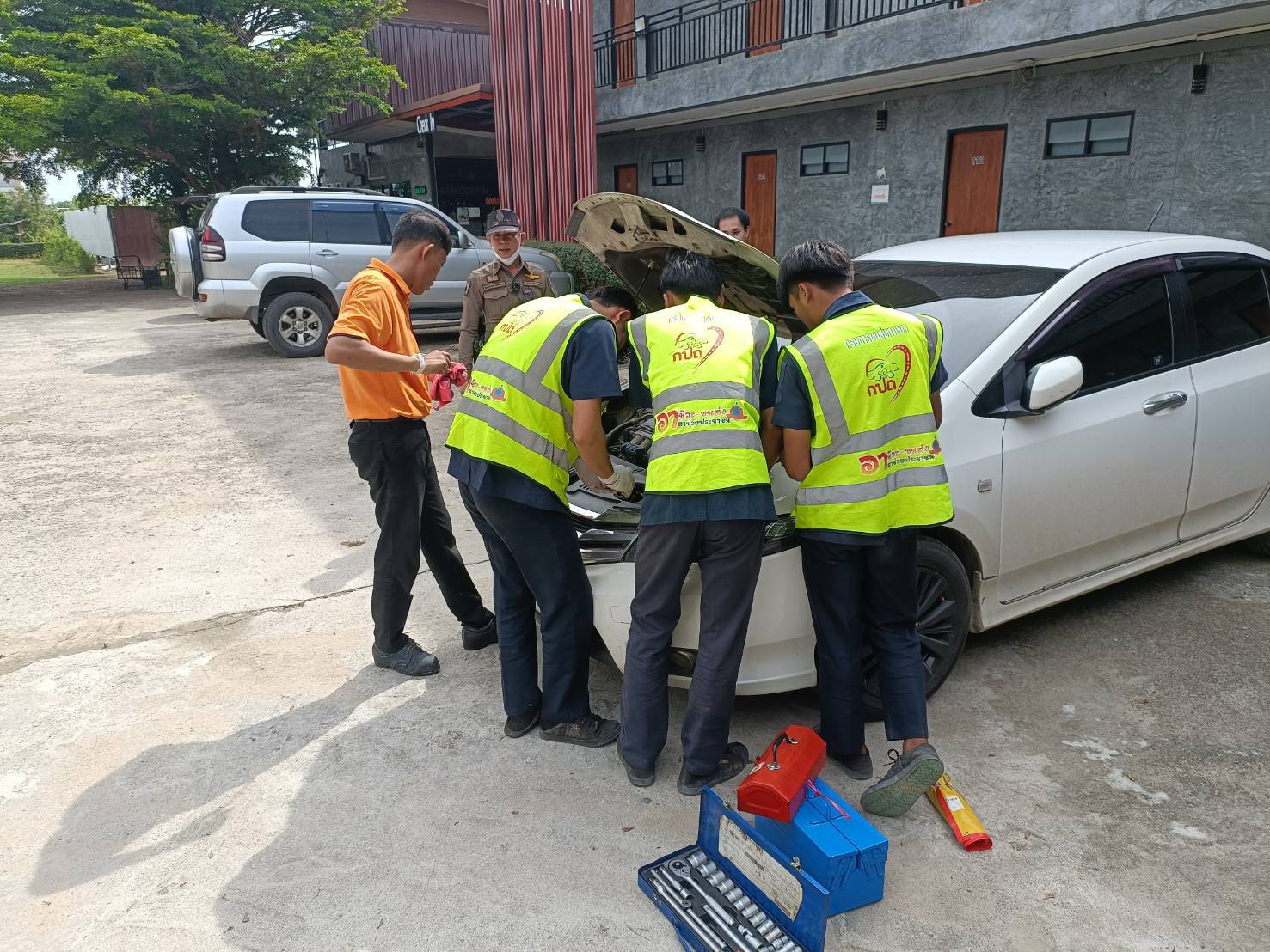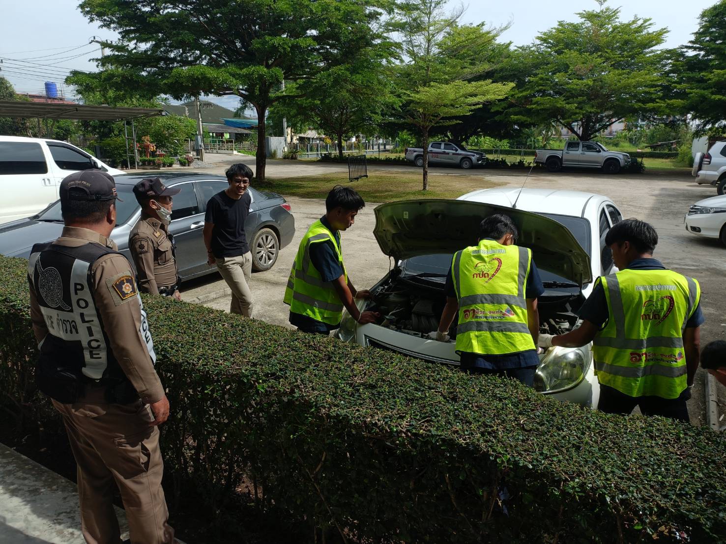สภ.ฝาง บูรณาการร่วมกับจุดบริการอาชีวะขนส่งอาสาช่วยประชาชน วิทยาลัยการอาชีพฝาง ตรวจสภาพรถของนักท่องเที่ยวในพื้นที่