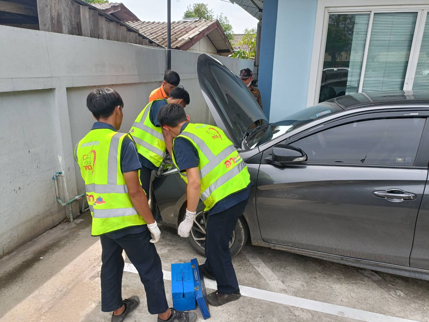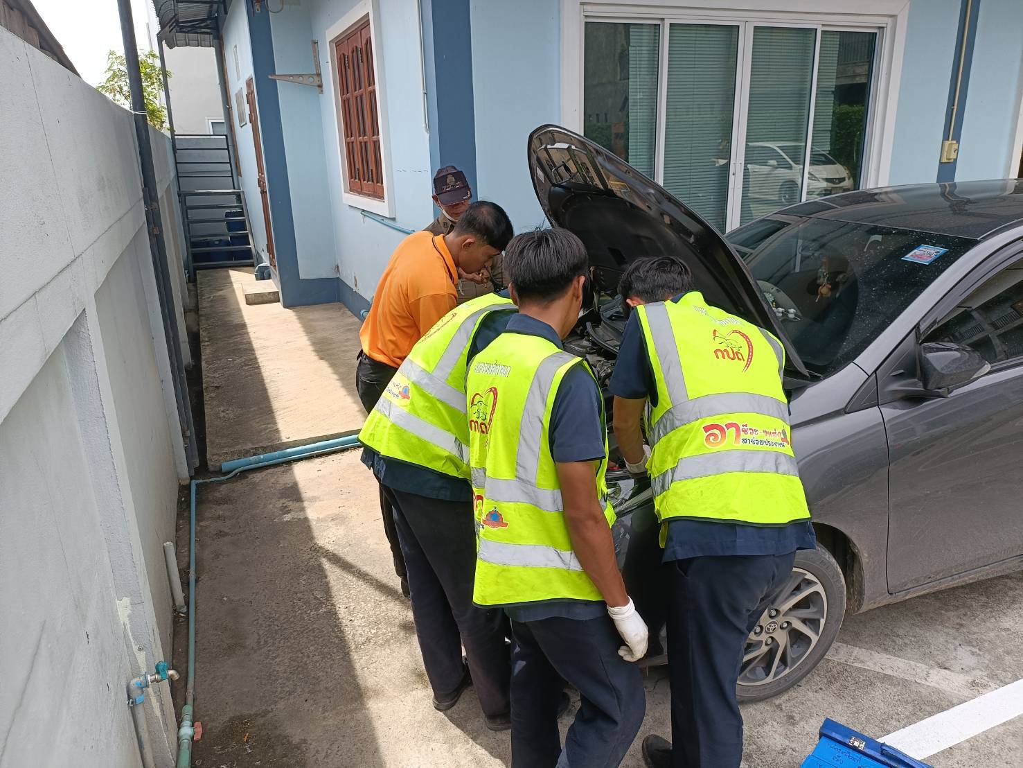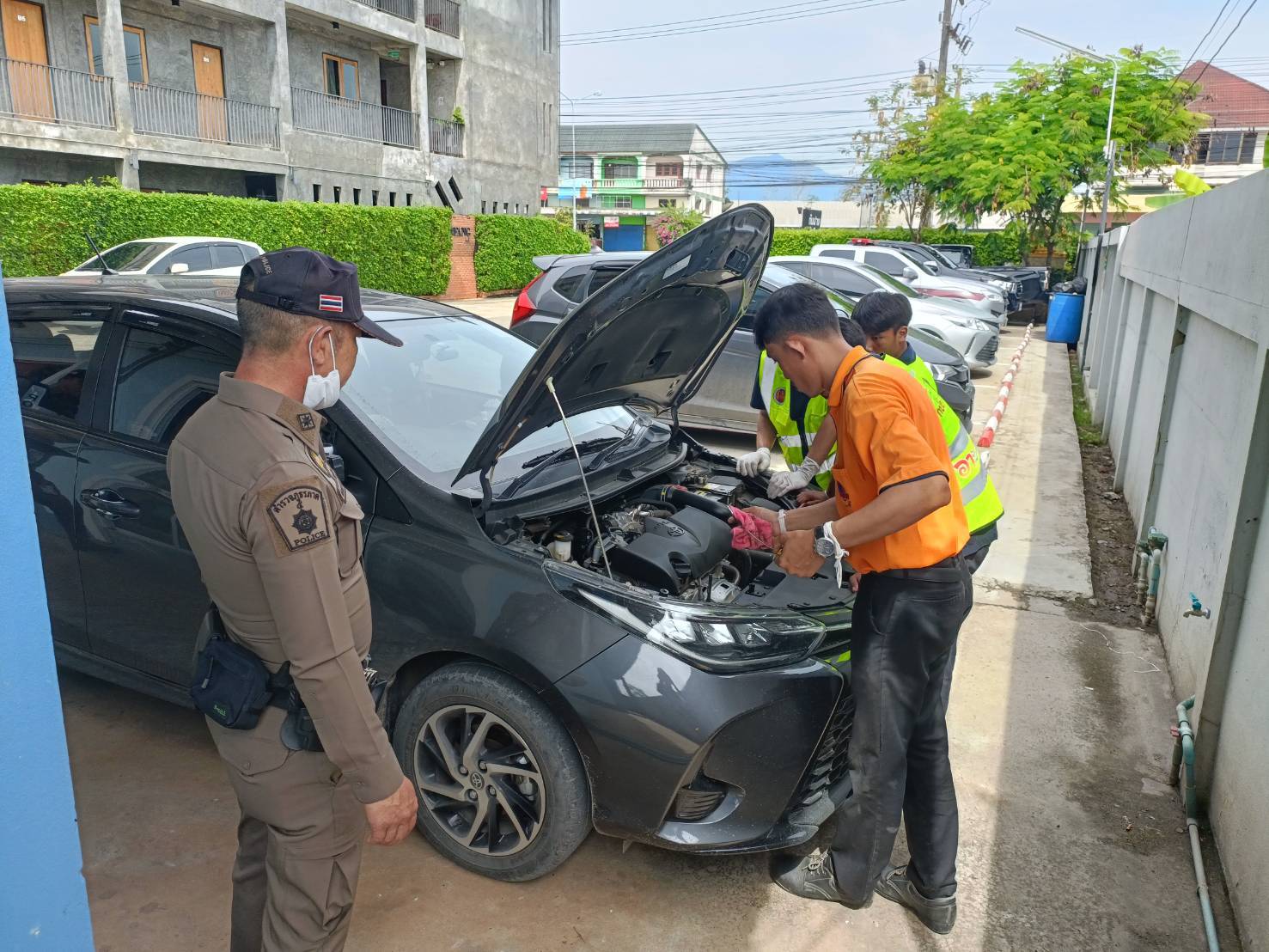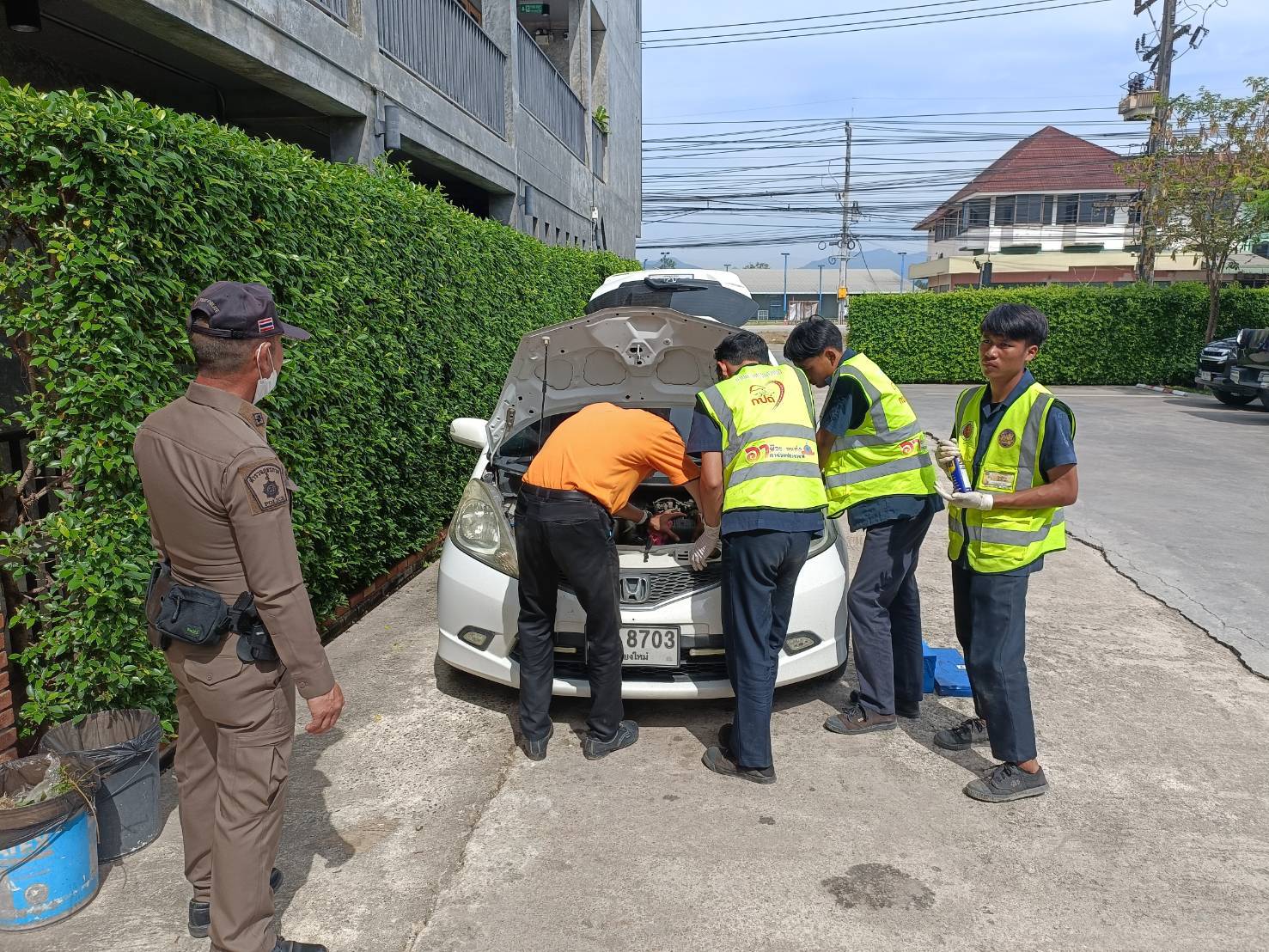 สภ.ฝาง บูรณาการร่วมกับจุดบริการอาชีวะขนส่งอาสาช่วยประชาชน วิทยาลัยการอาชีพฝาง ตรวจสภาพรถของนักท่องเที่ยวในพื้นที่ก่อนเดินทางกลับ หลังช่วงเทศกาลสงกรานต์ 2568