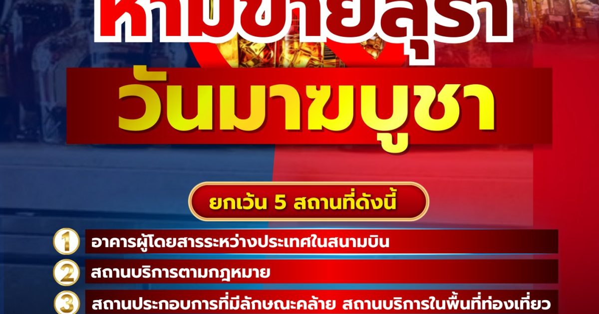 วันมาฆบูชา ซึ่งตรงกับวันที่ 3 มีนาคม 2569 เป็นวันสำคัญทางศาสนาพุทธ ที่มีกฎหมายห้ามจำหน่ายเครื่องดื่มแอลกอฮอล์