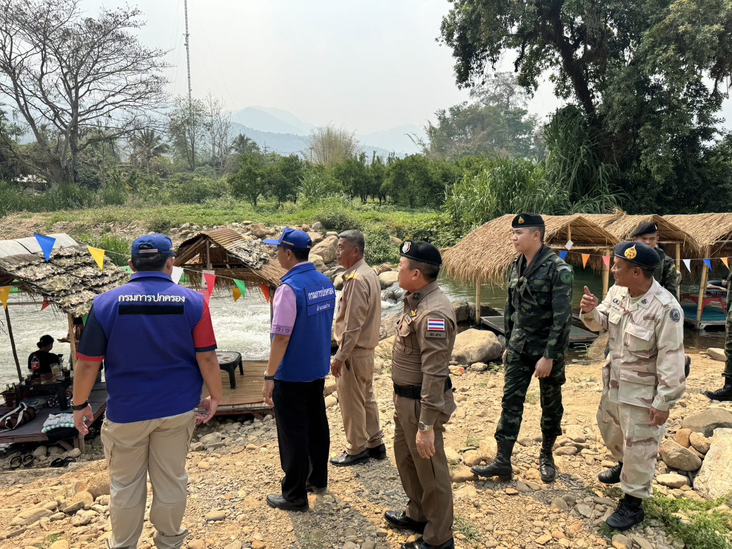 สภ.ฝาง ร่วมอำเภอฝาง ฝ่ายปกครอง ทหาร เจ้าหน้าที่สาธารณสุข ตรวจสถานที่ท่องเที่ยวท่าน้ำ แพเปียก ในพื้นที่ตำบลม่อนปิ่น อำเภอฝาง จังหวัดเชียงใหม่