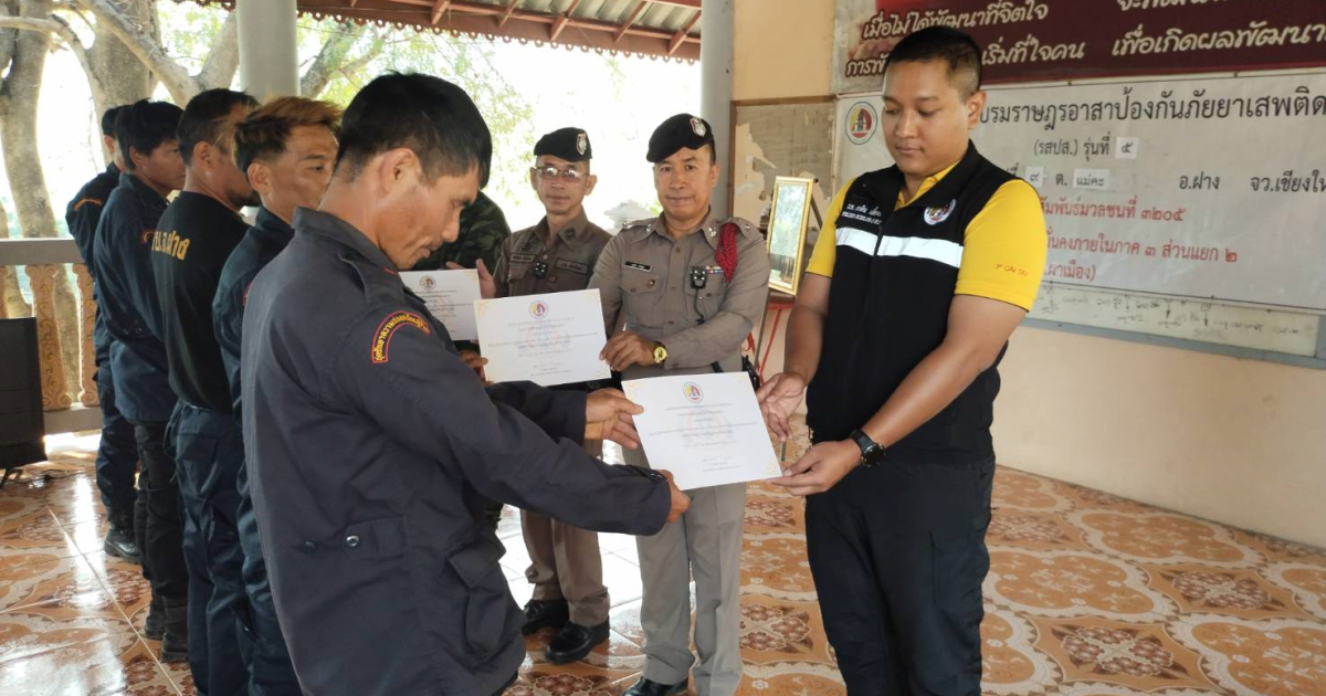 สภ.ฝาง เป็นวิทยากรฝึกการใช้อุปกรณ์ควบคุมบุคคลวิกลจริตให้กัล ชุด ชรบ.หมู่บ้าน